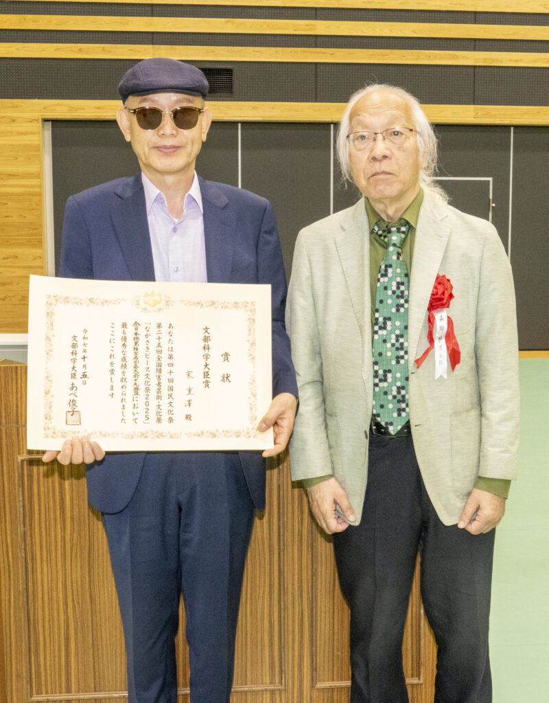 文部科学大臣賞を受賞された韓国の宋 重澤さんと森野節男九段の写真
