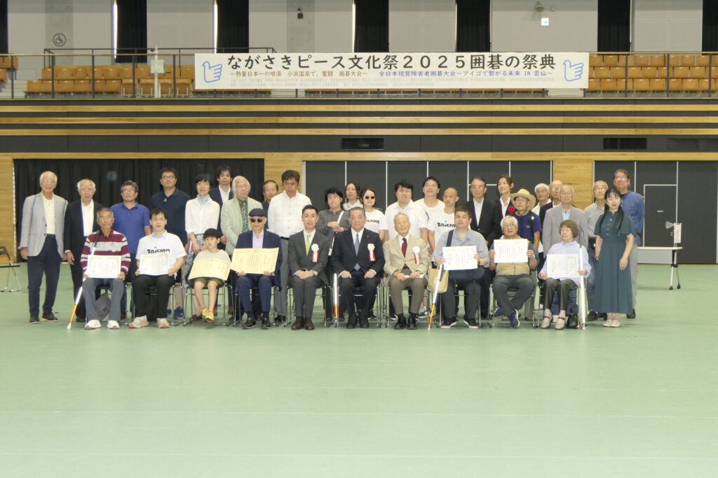 大会の運営にあたりましては、金澤秀三郎市長をはじめ雲仙市役所の皆さま、日本棋院長崎囲碁連盟、深堀囲碁教室、日本福祉囲碁協会、長崎大学の皆さま、そして地元雲仙市の囲碁愛好家の方々、審判員の皆さま、受付など各所でご協力くださったスポーツウィズハートのスタッフの皆さまに、多大なご尽力をいただきました。